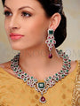| Aagam Necklace Set with Earrings in silver victorian finish studded with ruby and green jade stones |