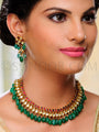 Aashi Necklace Set with Earrings in dull gold finish (handcrafted) studded with garnet, kundan and jade stones