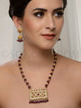Ahita Pendant Set with Earrings in dull gold finish studded with kundan and ruby