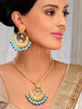 Amber Pendant Set with Earrings in dull gold finish studded with pachi kundan and turquoise beads