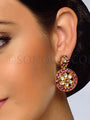 Earrings in dull gold finish studded with kundan and rhodonite stones