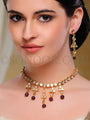 Aura Necklace with in dull gold finish studded with pachi kundan and rubies