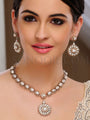 Chhaya Necklace with Earrings in Silver Rhodium finish studded with citrine and pearls