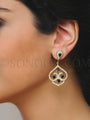 Earrings in dull gold finish studded with black onyx and cubic zircons