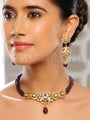 Damini Necklace Set with Earrings in dull gold finish studded with pachi kundan, cubic zircons