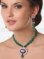 Drumi Pendant Set with Earrings in sterling silver victorian finish (hand crafted) studded with cubic zircons and rubies with stringing done in fine green jade beads