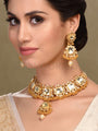 Elika Necklace Set with Earrings in dull gold finish studded with kundan and hanging tiny golden balls