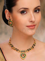 Faatina Necklace Set with Earrings in dull gold finish studded with colored czees and meena kari