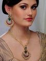 Giva Pendant Set with Earrings dull gold finish (handcrafted) studded with rhodonite and pachi kundan
