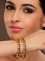 Pair Bangles in dull gold finish (openable) studded with pachi kundan and jade of size 2.6 dia