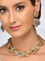 Hasna Necklace Set with Earrings in dull gold finish studded with onyx, turquoise, czee, and polki stones