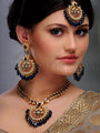 Hayal Necklace Set with Earrings and Maang Tika in dull gold finish (handcrafted) studded with ruby, iolite, and pachi kundan