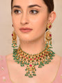 Jasmira Necklace Set with Earrings in dull gold finish studded with kundan, jade, and agate stones