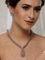 Nagi Pendant Set with Earrings in silver victorian finish studded with cubic zircons stringing in fresh water gray pearls