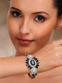 Nitya Single Kada (Openable) in silver rhodium finish studded with blue iolite and pearls of size 2.6 dia