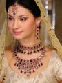 Peehu Bridal Set includes Necklace, Choker, Earrings, and Maang Tika in silver victorian finish studded with garnet and champaign czee stones