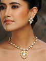 Sarit Pendant Set with Earrings in dull gold finish (handcrafted in silver) studded with bikaneri pachi kundan