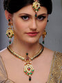 Suvti Necklace Set with Earrings and Maang Tika in dull gold finish (handcrafted) studded with bikaneri pachi kundan, jade and rhodonite