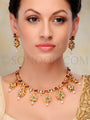 Taj Necklace Set with Earrings in dull gold finish studded with fine kundan, jade, and pearls