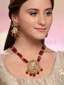 Taruna Pendant Set with Earrings in dull gold finish studded with pachi kundan stones and hanging agate beads