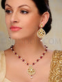 Tisya Pendant Set with Earrings in dull gold finish studded with pachi kundan stringing in pearl and jade beads