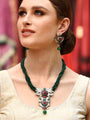 Ujila Pendant Set with Earrings in silver rhodium finish studded with cubic zircons, black onyx, ruby and jade stones