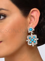 Earrings in silver victorian finish studded with cubic zircons and turquoise stones