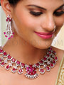 Yogini Silver Finish Ruby Cubic Zirconia Necklace Set