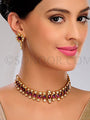| Zeenat Necklace Set with Earrings in dull gold finish studded with kundan and rhodonite |