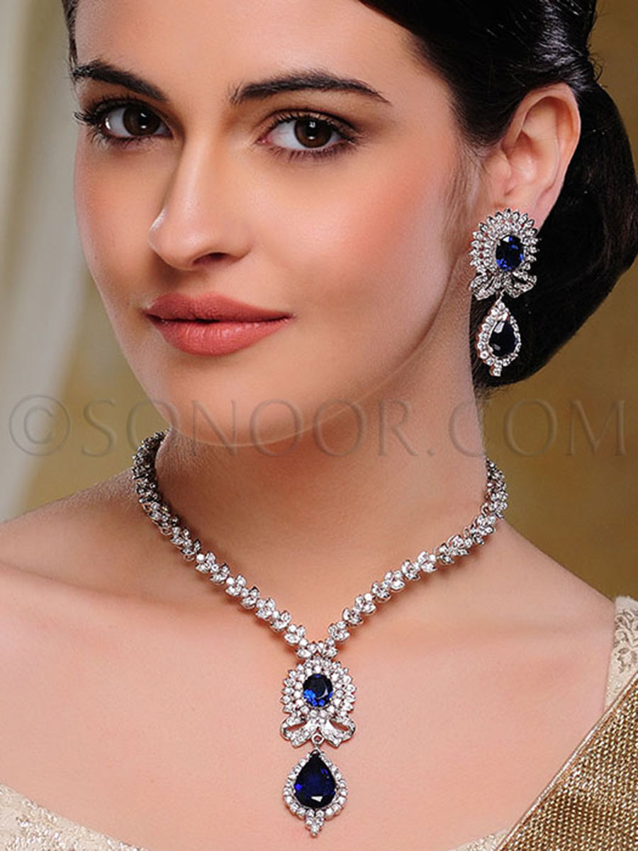 Samsni Cubic Zirconia Water Pearl String Pendant Set