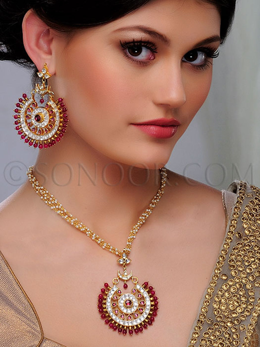 Shriu Kundan Ruby Pearl String Pendant Set
