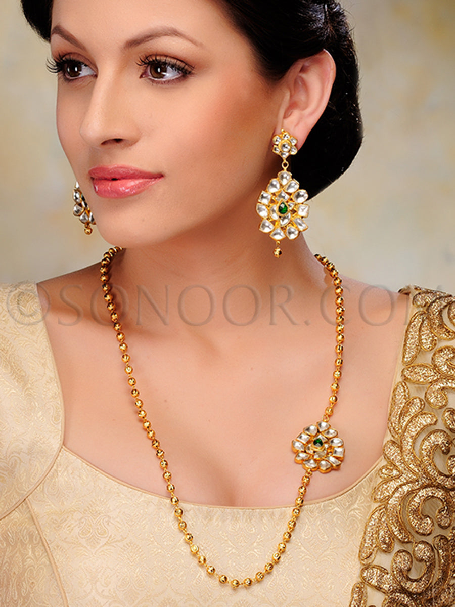 Tisya Pearl and jade beads Pachi kundan Pendant Set