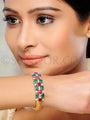 Bracelet in frosted gold finish (openable) studded with cubic zircons, green jade, and ruby of size 2.4 dia