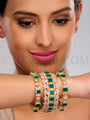 Kyra Three Set Bangle in dull gold finish studded with green jade and begets of size 2.6 dia