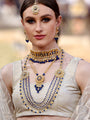 Chilcha Bridal Set includes Necklace, Rani Haar with Earrings in dull gold finish studded with pachi kundan, green jade and red agate stones stringing in green jade beads