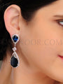 Earrings in silver rhodium finish studded with cubic zircons and blue iolite czee stones