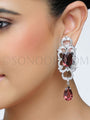 Anishta Long Earrings in silver rodium finish studded with cubic zircons and rhodonite Cubic Zirconia stones