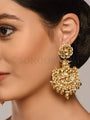 Ganikini Earrings in dull gold finish studded with pachi kundan, pearl and golden droplets
