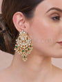 Earrings in dull gold finish studded with kundan, green jade stones and pearls