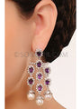Silver Finish Cubic Zirconia Purple Stone Earrings