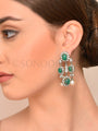 Earrings in silver victorian finish studded with cubic zircons and emerald stones