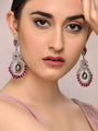 Earrings in silver victorian finish studded with cubic zircons and red jade stones