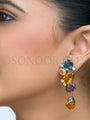 Earrings in silver victorian finish studded with rhodonite citrine and white czee stones