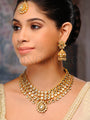 Akilah Necklace Set with Earrings in dull gold finish studded with kundan stones stringing in agate beads