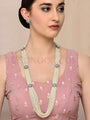 Chira Chain Style Necklace Set with Earrings in silver rhodium finish studded with cubic zircons multi stringing in small pearl beads