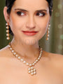 Dilber Necklace Set with Earrings (Choker Style) in silver victorian finish studded with cubic zircons and pearl droplet