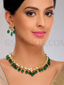 | Jaina Necklace Set with Earrings in dull gold finish studded with pachi kundan and green agate stones |