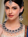 Kevika Necklace Set with Earrings and Maang Tika in silver rhodium finish (handcrafted) silver settings studded with blue iolite and cubic zircons