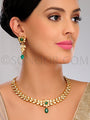 Nithya Necklace Set with Earrings in dull gold finish studded with pachi kundan and green agate stones