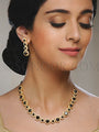 | Nuhin Necklace Set with Earrings in dull gold finish studded with black onyx and cubic zircons |